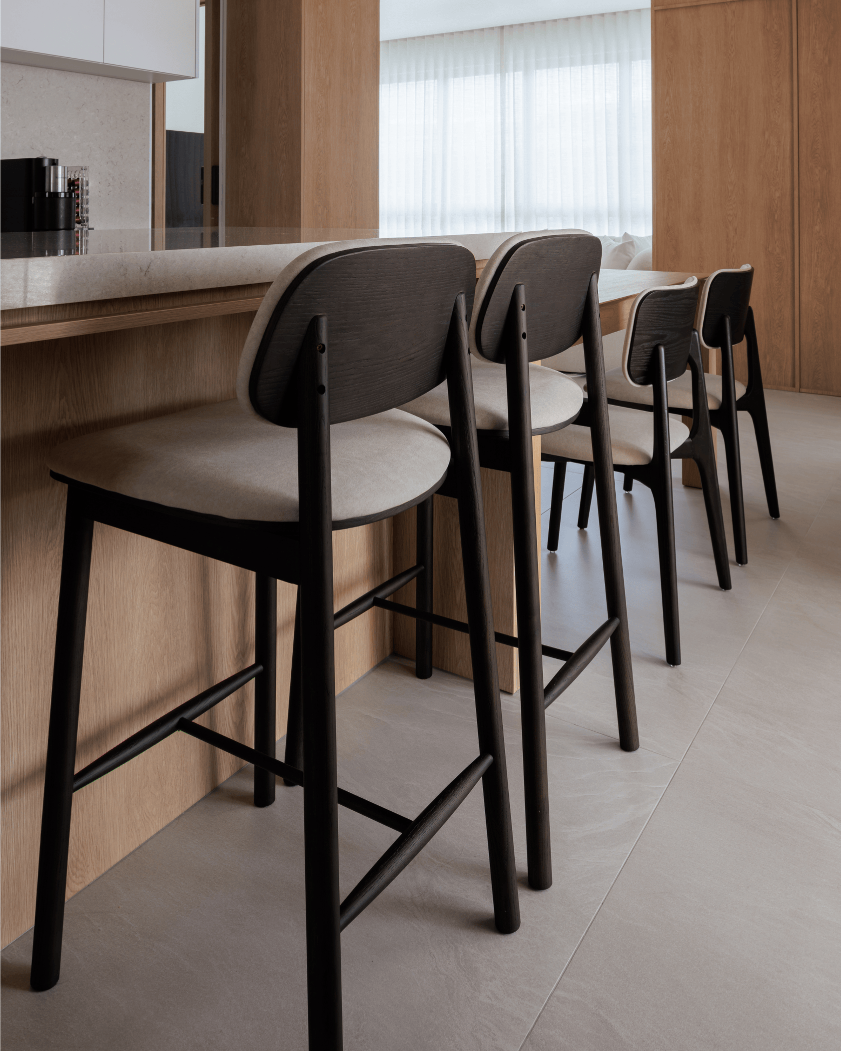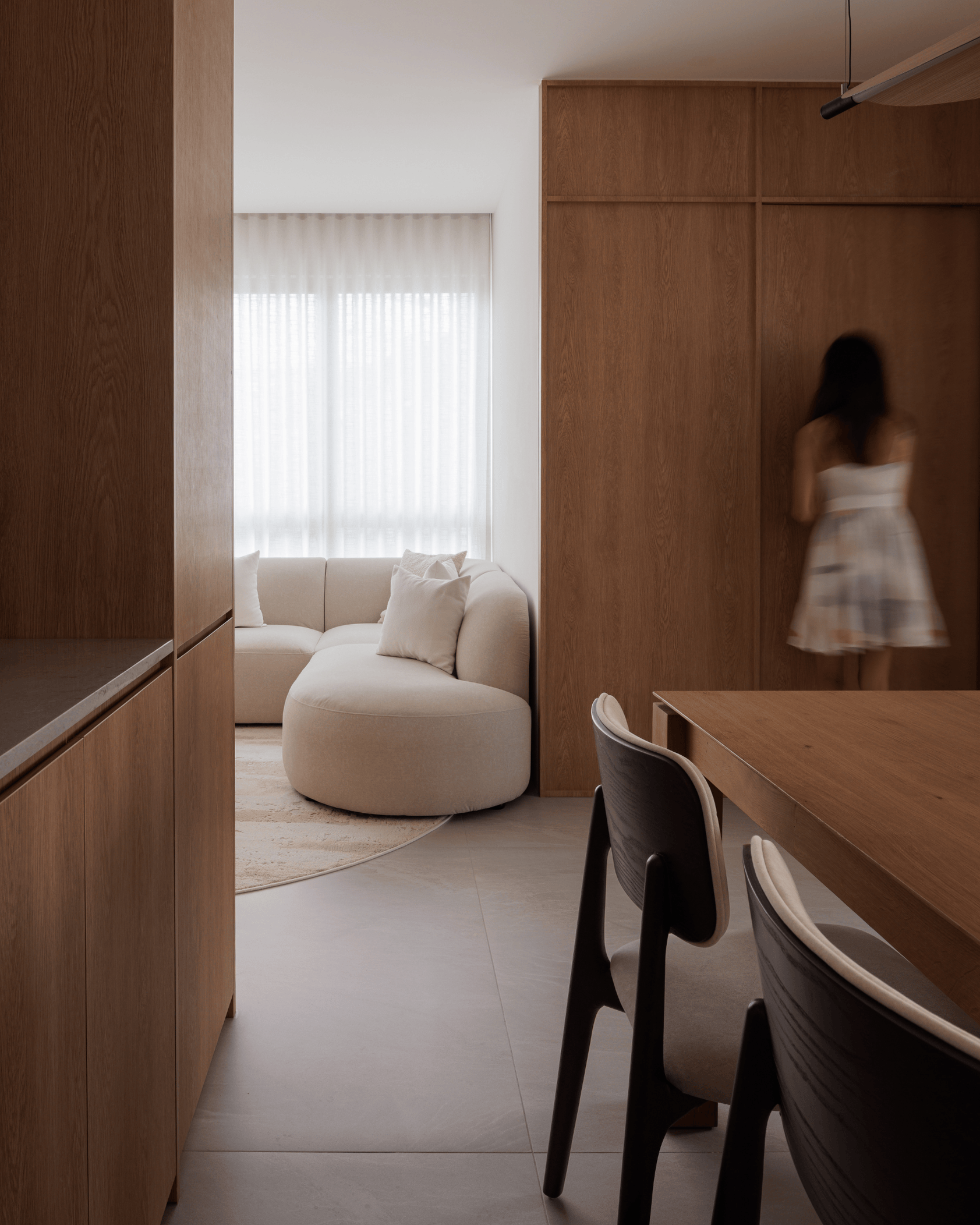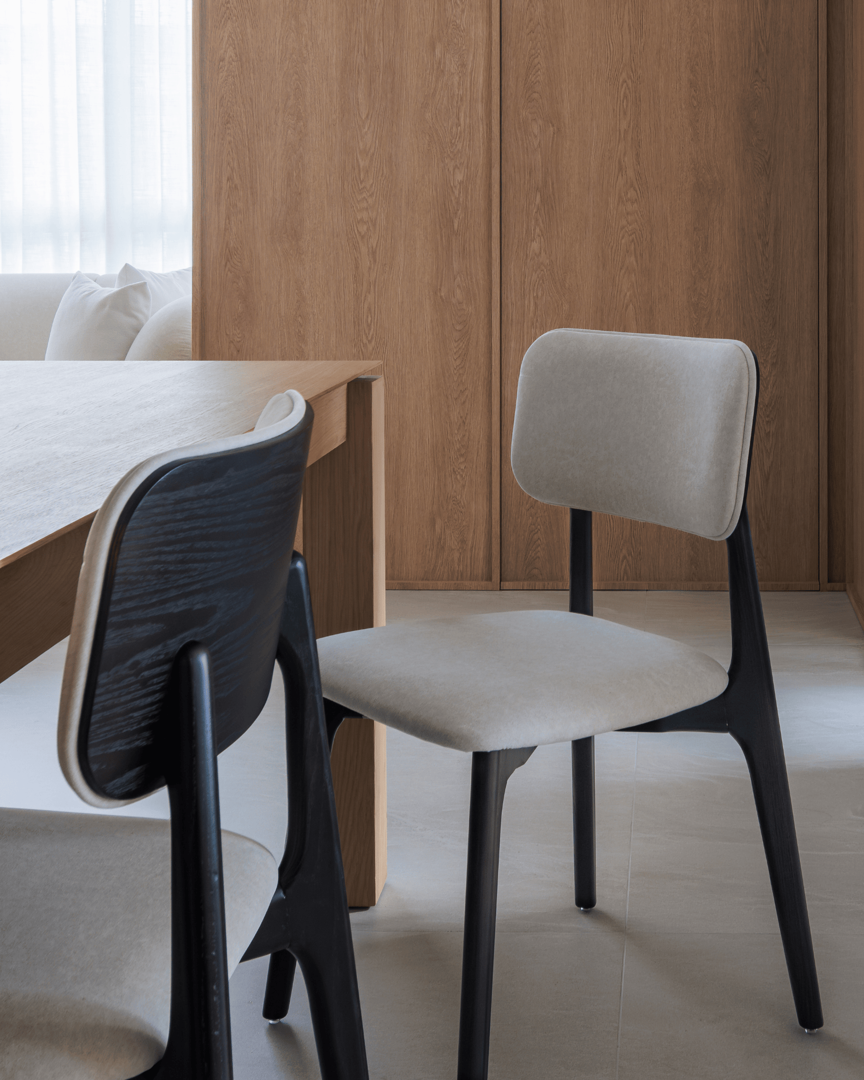 This project embodies the essence of modern Japandi design through a thoughtfully curated, earthy color palette. Warm whites, natural oak, and smoked oak flow effortlessly between the living and dining areas, establishing a sense of unity and cohesion. Soft, neutral shades not only cultivate a serene, zen-like atmosphere but also simplify the art of mixing and matching, ensuring every hue complements the next.