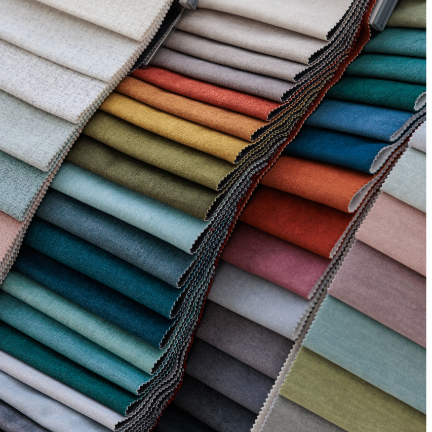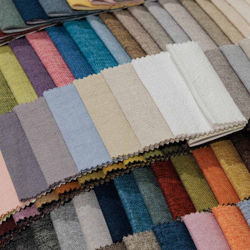 From water-resistant scratch-resistant pet friendly, leather, linen, textured polyester materials like bouclé and chenille