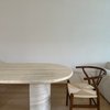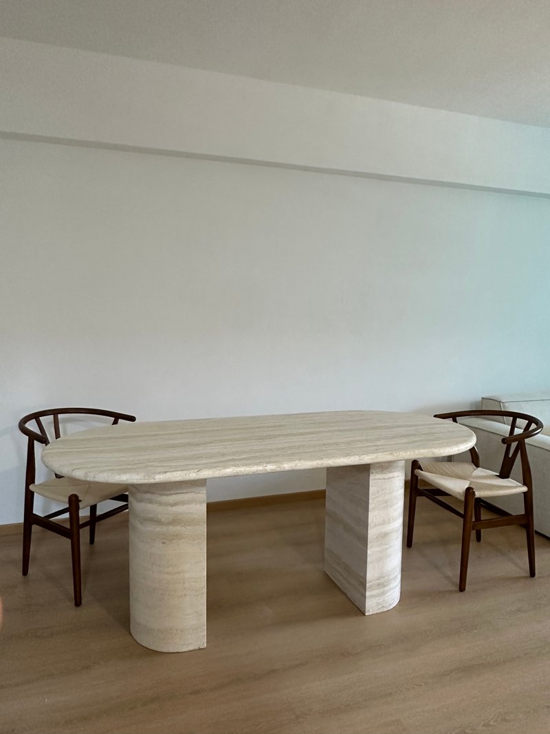 Discover the epitome of difference and satisfaction of customising your own dining table with our Casteleyn Collection, With a unique oblong table top crafted to complement any dining space, the oblong shape offers a modern twist on timeless elegance. The natural beauty of travertine stone ensures each table is unique, featuring distinct veining and textures.