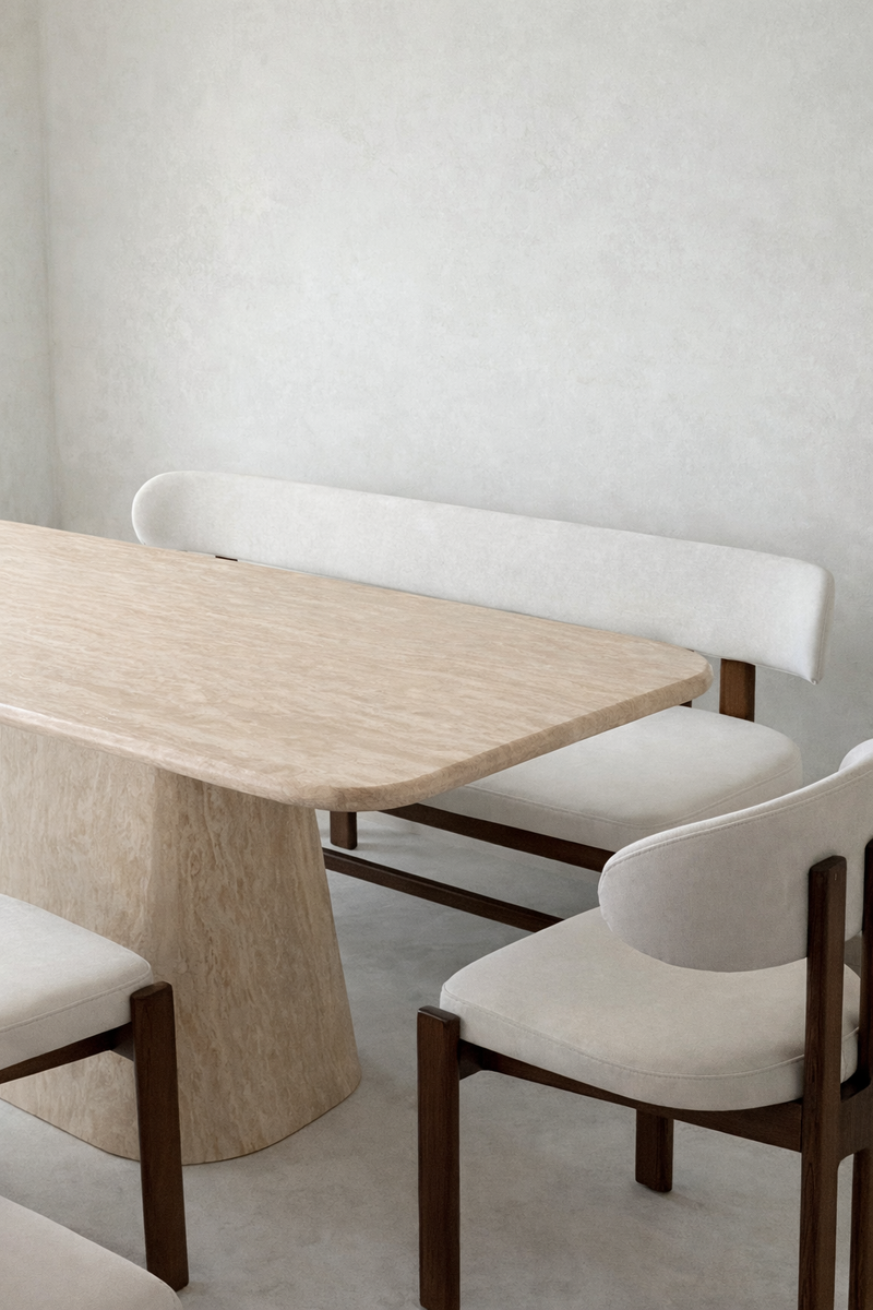Elevate your dining experience with the organic beauty and durability of our travertine dining table, where every meal becomes a celebration of style and refinement.