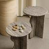 Crafted to captivate, this side table features a sleek, undulating wave base meticulously sculpted from solid Italian travertine stone. The flowing, wave-like design of the table base not only enhances visual appeal but also invites a sense of tranquility and harmony into your home.