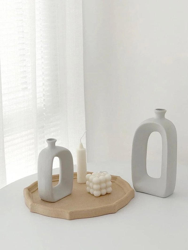 Our Hadassah Loop Ceramic Vases are finished in pristine matte white, offering the perfect complement to Scandinavian homes. Their minimalist design and smooth contours embody the essence of Scandinavian aesthetics, blending seamlessly with modern interiors. Each vase is crafted to enhance the natural beauty of flowers or stand elegantly on its own, adding a touch of understated elegance to any room.