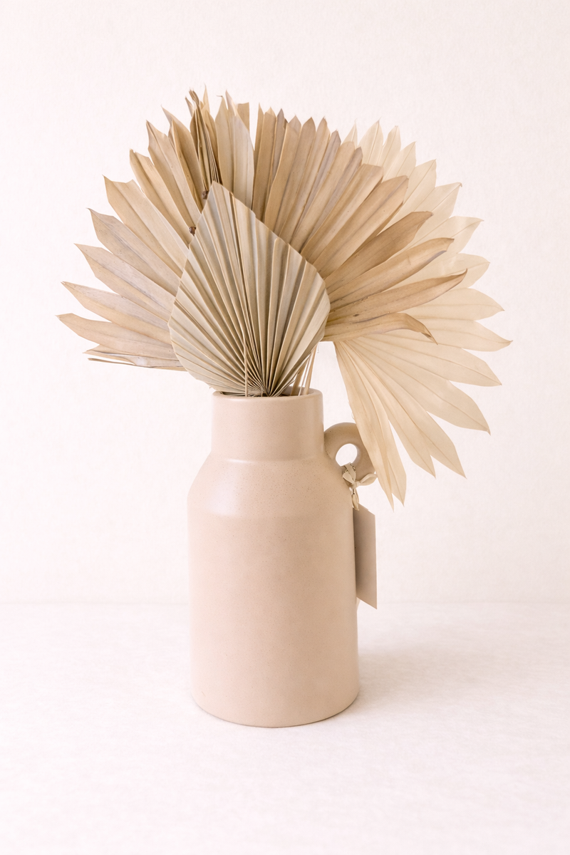 This beautifully designed vessel is a perfect blend of artistry and functionality, specifically crafted to hold and display dried flowers. The vase's defining silhouette features an elegant gourd-shaped body, gracefully tapering at the top and bottom to create a harmonious and balanced form. The subtle geometry of the body are thoughtfully complemented by the single handle, which add a touch of whimsy and sophistication to the design. This vase effortlessly fits into various decor styles, making it a versatile and stylish addition to any home.