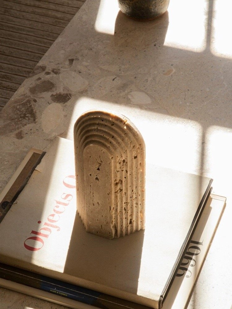 Creating a focal point that radiates elegance and sophistication in any space with Ingrid series. These travertine objects were carved directly from travertine stone, not only enriches the aesthetic of its surroundings but also invites a tactile exploration of its tactile and visually captivating form.