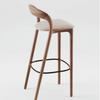 Delicately thin yet impossibly sturdy, each stool is lovingly hand-finished by master craftsmen, revealing the soul of the wood through every curve and contour. The footrest, available in classic black or white powder-coated finishes—with custom hues or aged brass available upon request—adds a subtle gleam to its organic silhouette.