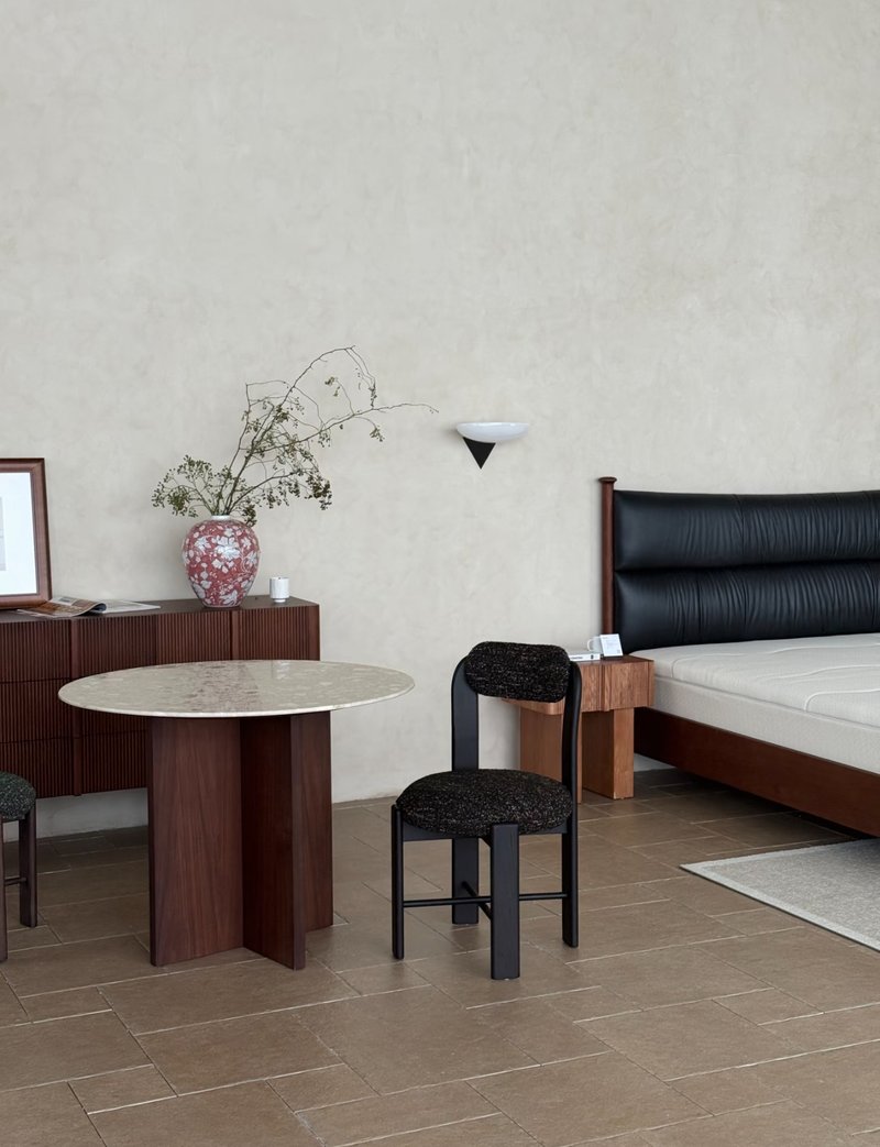 Whether enhancing a dining area, café, or home office, it adds a touch of character with its rounded seat and distinctive cross-base structure. Every detail has been meticulously considered—from the smooth wood finish to the premium upholstery—creating a chair that is as beautiful as it is comfortable.
