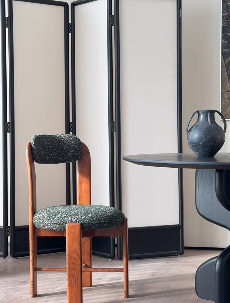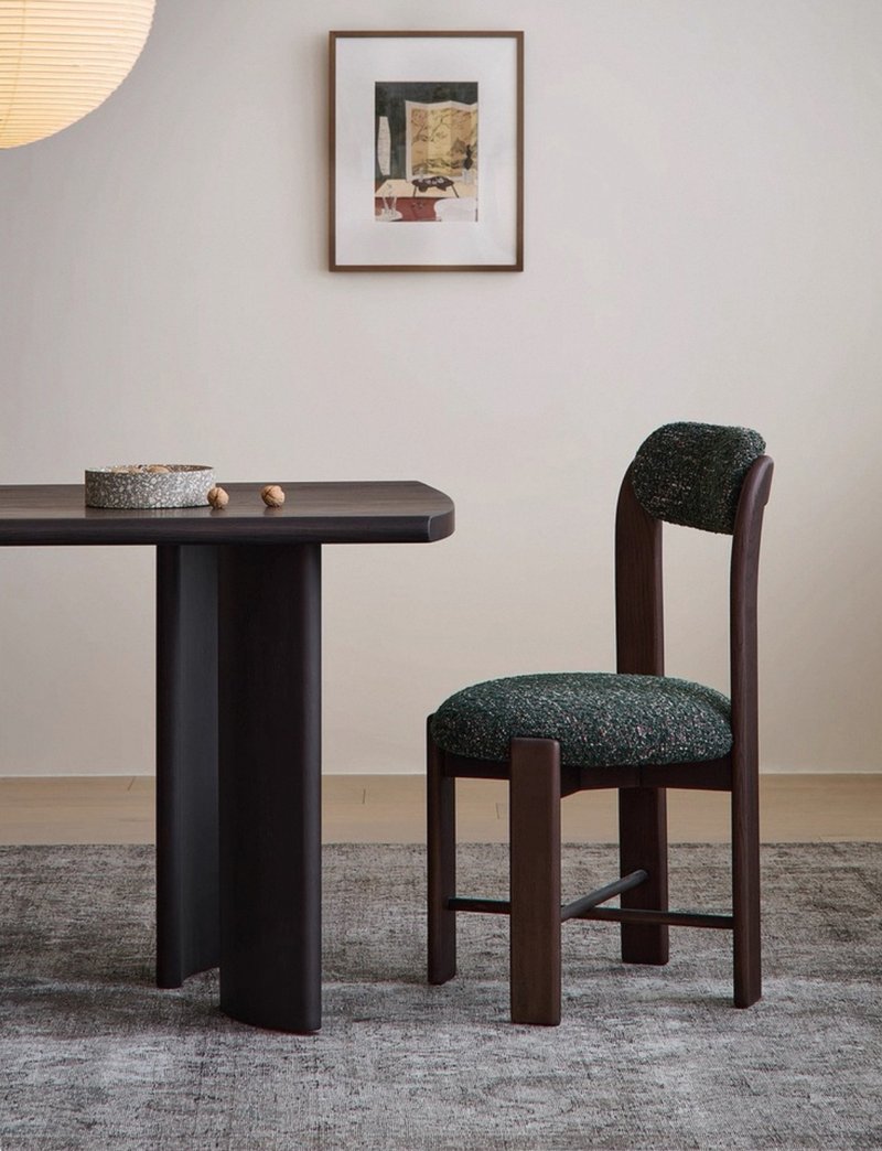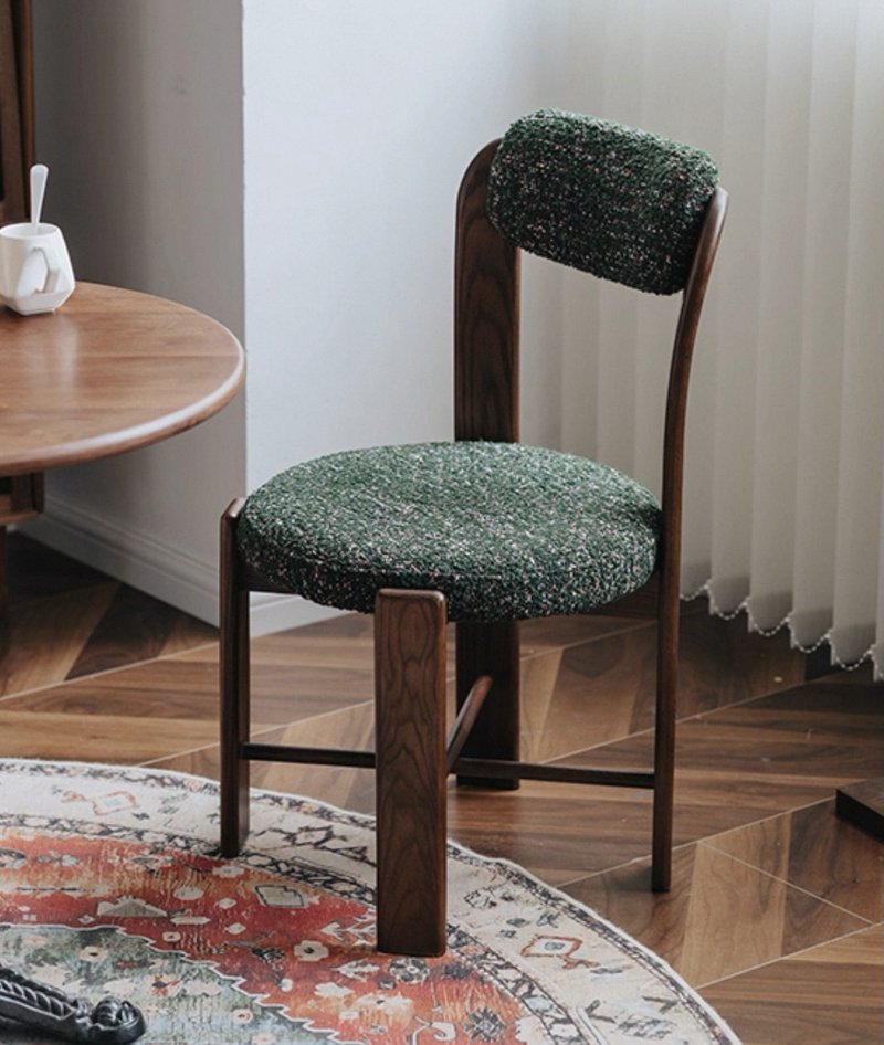 A compact, mid-century–inspired chair, crafted with a solid ash wood frame, this piece is built to last—offering enduring durability and stability for years to come. The gently curved backrest and fully upholstered seat and back provide exceptional comfort and support, allowing you to relax and enjoy every meal in style. Its compact frame makes it ideal for smaller spaces, ensuring a perfect fit around any dining table without compromising on design.