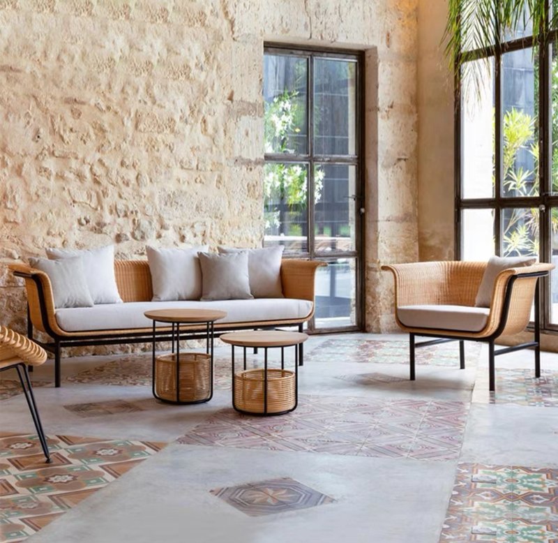 • Premium Rattan Construction: Crafted from high-quality, weather-resistant rattan, this sofa is built to endure the elements while maintaining its refined appearance. The rattan is intricately woven for both durability and an artisanal look that complements any outdoor décor.