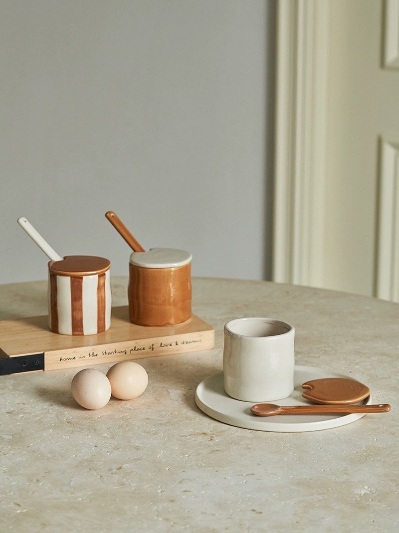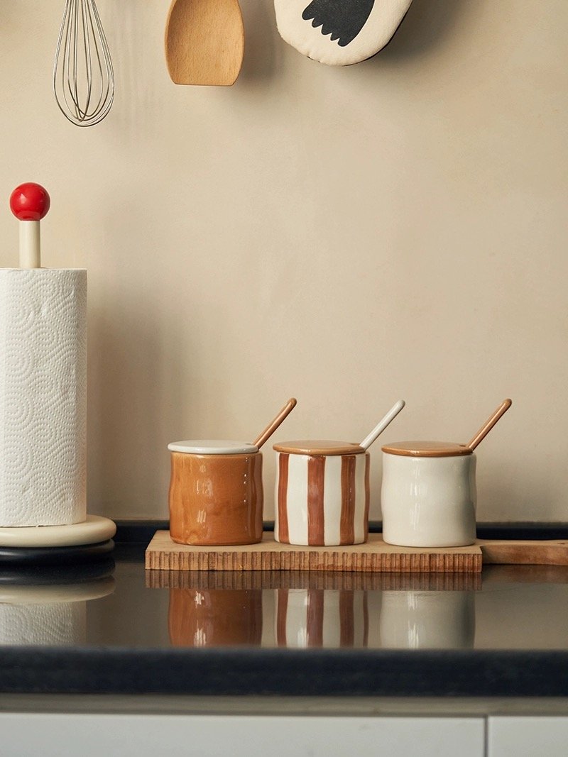The Magnolia Kitchen Ware collection celebrates vibrant and cheerful warm colours, offering these pieces that reinvent artisan techniques. They are made from ceramic with a gloss glazed effect. Each set includes precision-fit lids for effortless seasoning and a stylish presentation, ensuring both practicality and elegance in every meal. It is also suitable for storing sugar or even tea bags.