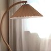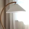 This elegant and simplistic mid-century style wood floor lamp features a pleated linen lampshade, bringing a clean and organic aesthetic to your space, reflecting elegance and minimalism all at once.
