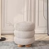 In a classic ribbed cylindrical design, our Tansy stool in chantilly white stool is both versatile and adorable. Made with high-density latex foam, it offers cushy comfort to put your feet up or as an extra seat around the coffee table.