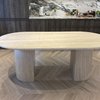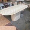 Elevate your dining experience with the organic beauty and durability of our travertine dining table, where every meal becomes a celebration of style and refinement.