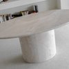 Introducing our customisable Chastity Travertine Dining Table, a masterpiece of natural elegance and enduring craftsmanship. Handcrafted from premium travertine stone, each piece boasts unique variations in color and texture, making it a one-of-a-kind addition to your dining space. The smooth, polished surface of the travertine top exudes sophistication and invites tactile exploration.