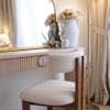 Ferances is both demure and a statement. Crafted entirely from imported ash wood and redefined with curved wood panelling, Fiona demands attention but softens your gaze with thin legs and beautifully symmetrical semicircular sides.