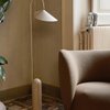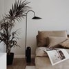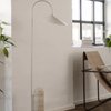 Achieving the perfect balance in the off-center structure of the lamp, the marble base counterweights the gentle suspension of the lampshade from the curved metal arch in a leaf-like manner. With the matte, off-white interior of the shade, the lamp provides a soft, evenly distributed light, and the adjustable lampshade ensures optimal lighting conditions in any situation.