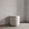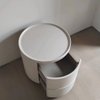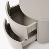Artisanal woodworking gives our Deliana its elegant form and curved design. Handcrafted from solid wood and finished in matte grey, it features two custom push-to-open drawers for convenient storage of your nighttime essentials, ensuring easy access while keeping the tabletop clutter-free.