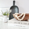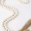 Enhance your decor with bead garlands, perfect for layering over vintage vases or draping across a stack of books on your coffee table. These natural, non-coated wood beads add rich texture to any setting, complemented by the rustic charm of jute rope tassels.