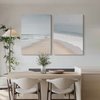 Adorned with a blend of ocean blues and sun-soaked sand tones, the abstract artwork exudes a serene essence that seamlessly integrates into any decor. It captivates as a focal point, inspiring daily with beach coastline and nature.