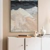 Transform your space with the captivating beauty of our abstract landscape painting. Parisa features bold, textured brushstrokes that evoke the majesty of a rugged landscape. Dark tone slowly fades into a lighter gradient reminiscent of a mountain range or a dramatic sky. The lighter shades of blue and white depicts snow-covered peaks or drifting clouds. The earthy tones of beige and light brown in the lower section add a sense of sandy or rocky terrain.