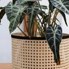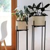 A Mediterranean-inspired rattan basket black metal planter stand, this eye-catching freestanding planter and your favourite house plant is sure to make a statement at your home.