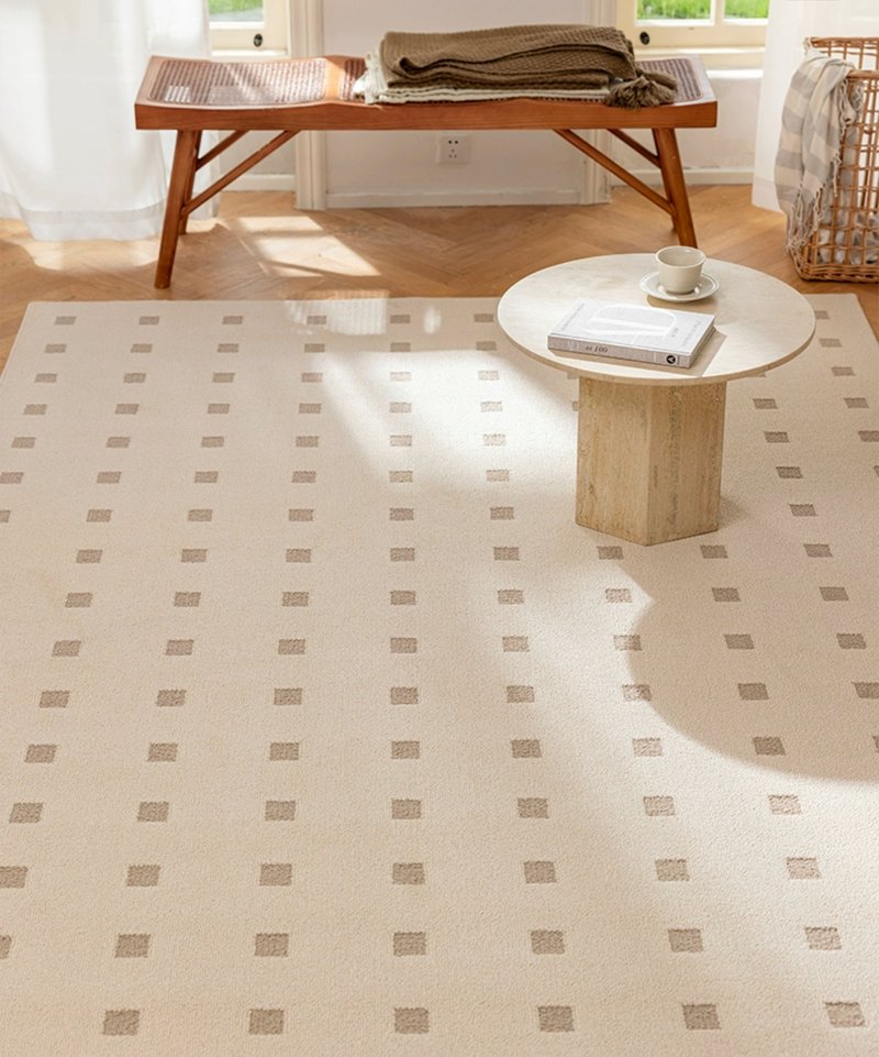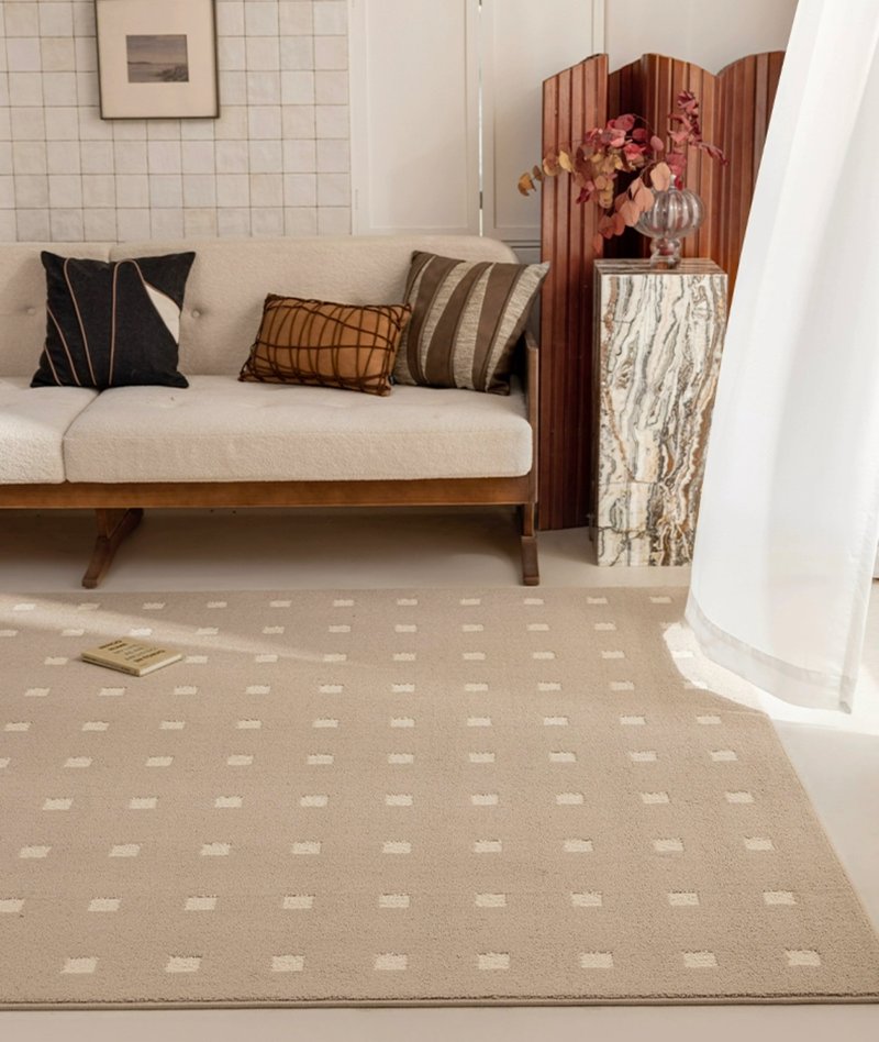 Our Rosenella Rug features an exceptionally sturdy texture with a subtle geometric design that embraces a warm taupe and the versatile cream base, adding undeniable sophistication to any space. Its piped edge finish and low pile make it both easy to clean and maintain. Additionally, the use of synthetic materials makes this rug an excellent choice for allergy sufferers, offering both durability and comfort.