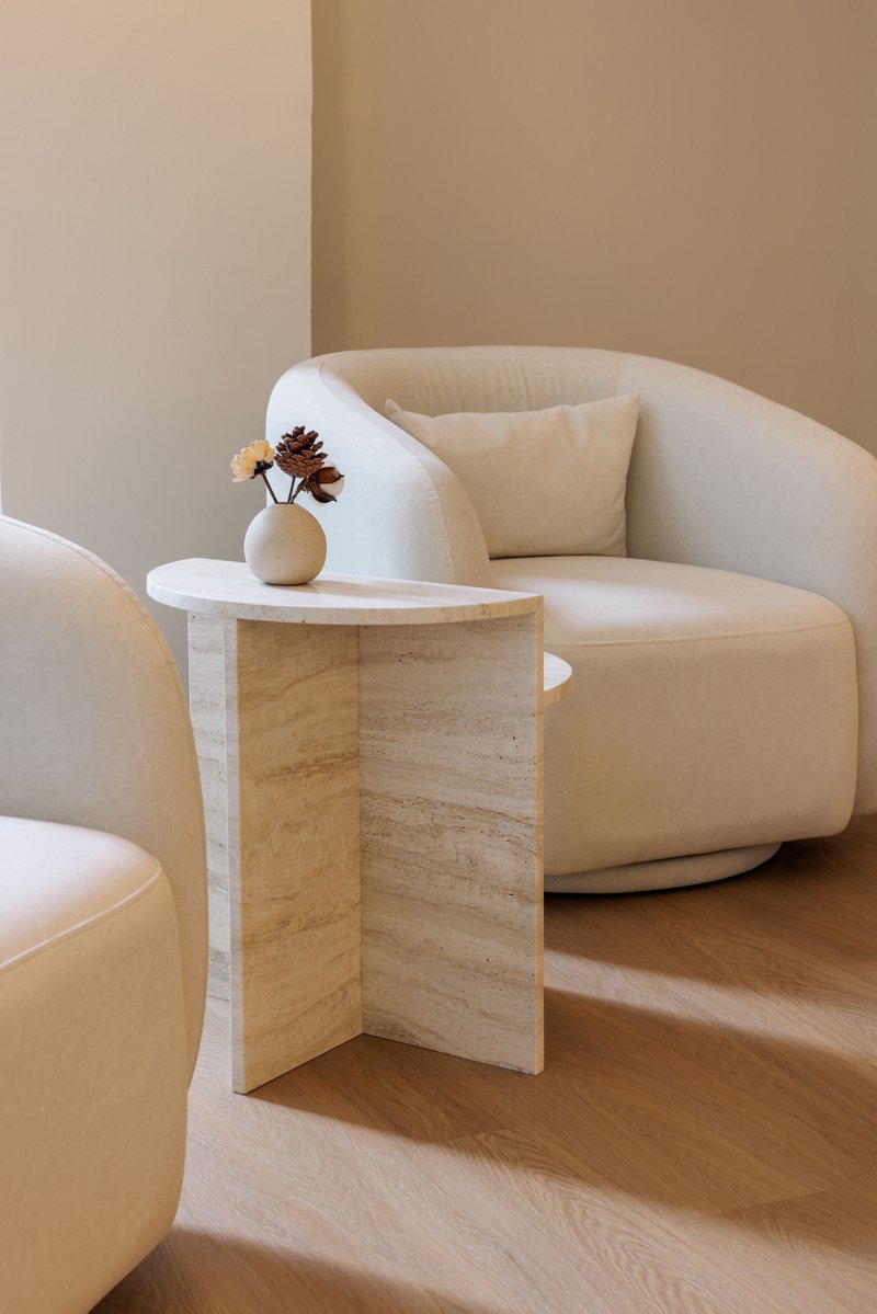 Our Vendella Table is a statement of quiet function, where form gracefully creates purpose. Sculpted from travertine with naturally unique veining, each piece is truly one of a kind. Its distinctive high–low tabletop balances elegance with practicality, offering space to style décor while keeping your favourite drink within reach.